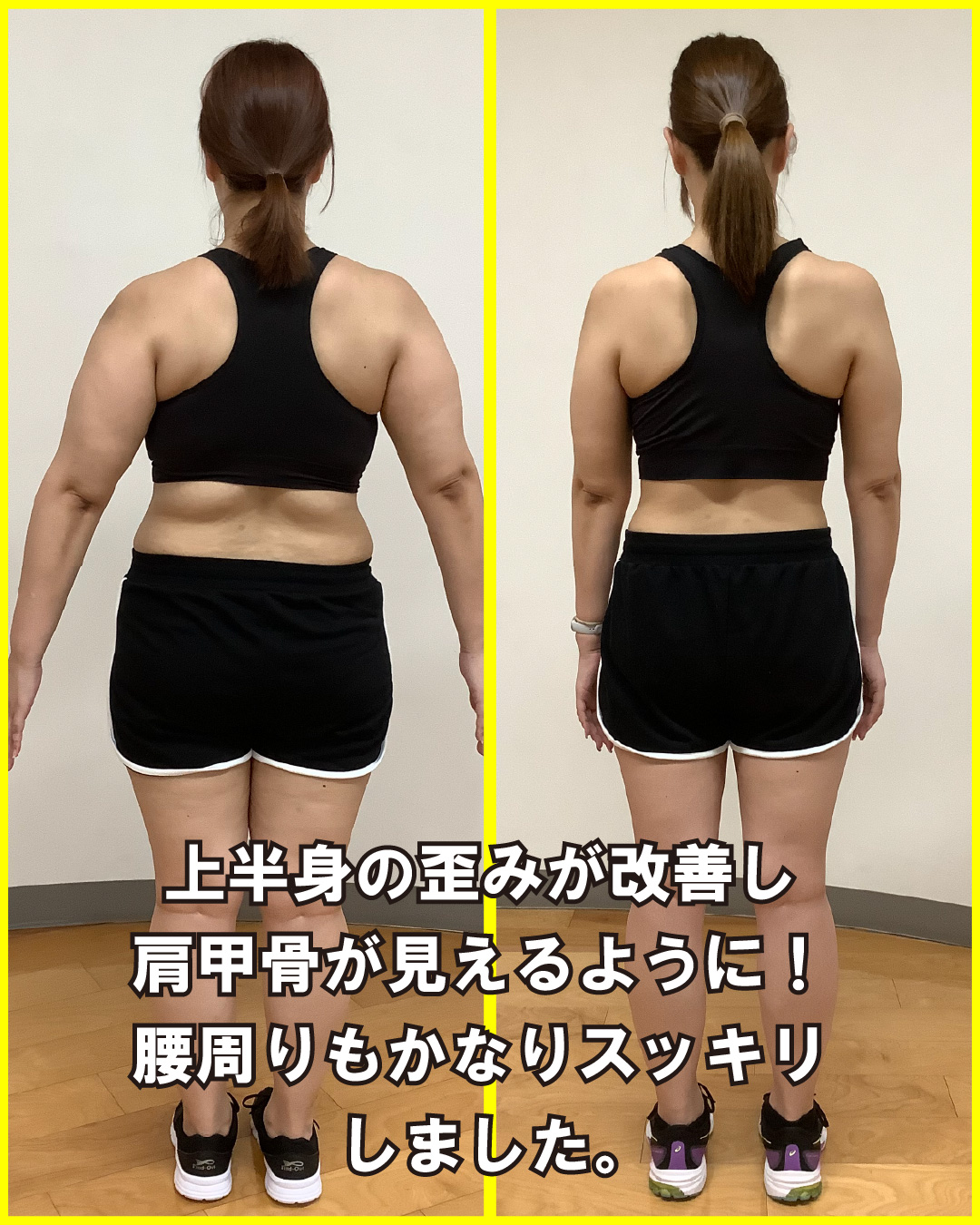 上半身の歪みが顕著でしたが、トレーニングを続けるにつれて徐々に改善。