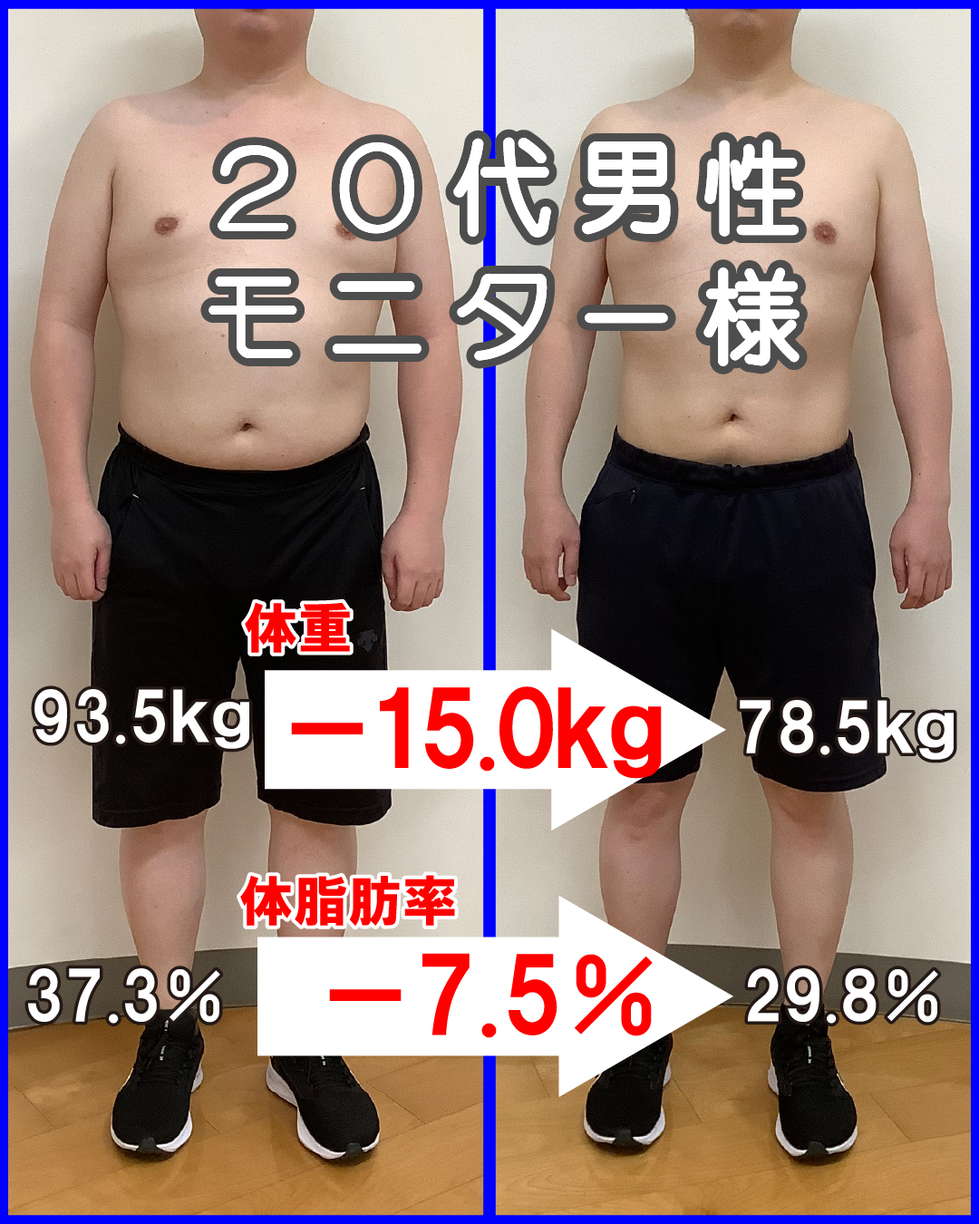 結果としてはかなり満足しています。意思の弱い自分一人ではここまで瘦せることは出来なかったと思います。このまま終えるのではなく出来る限り継続して、もう少し落とせるよう努力したいと思います。